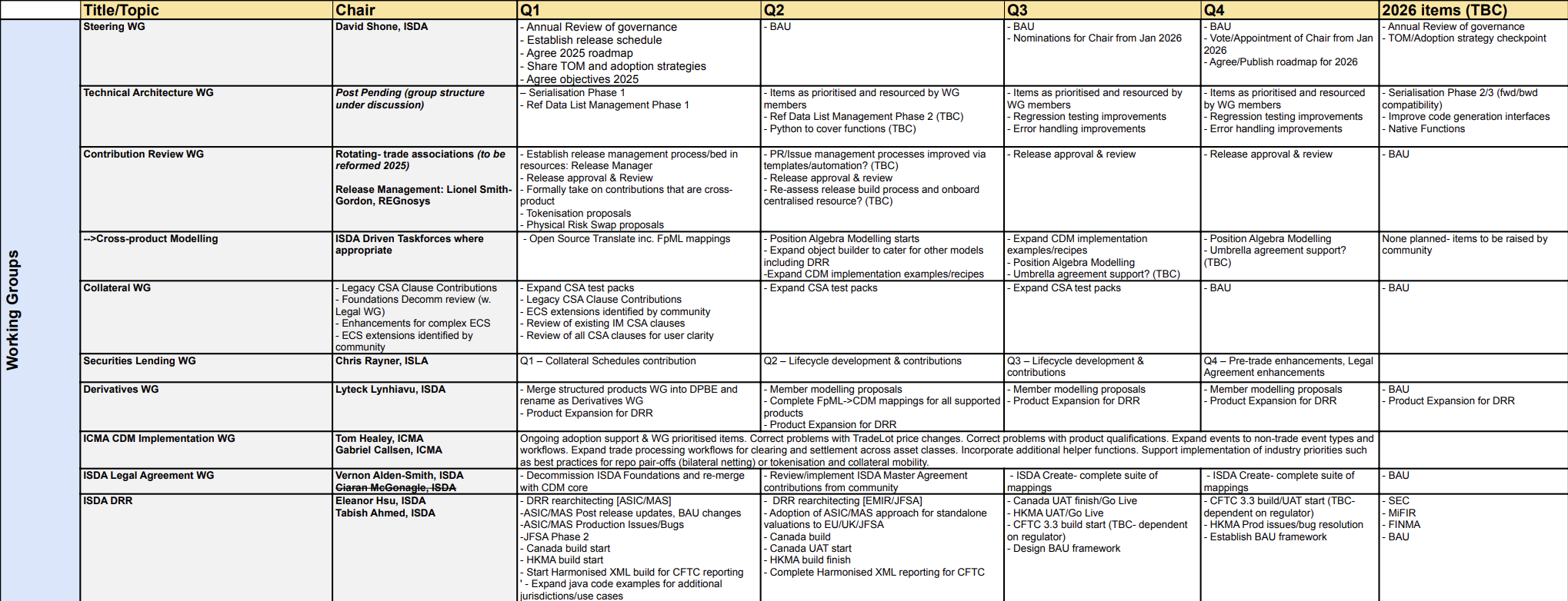 • The latest CDM roadmap of expected contributions sponsored by the presently participating trade associations: ICMA, ISDA and ISLA can be found under Roadmap .